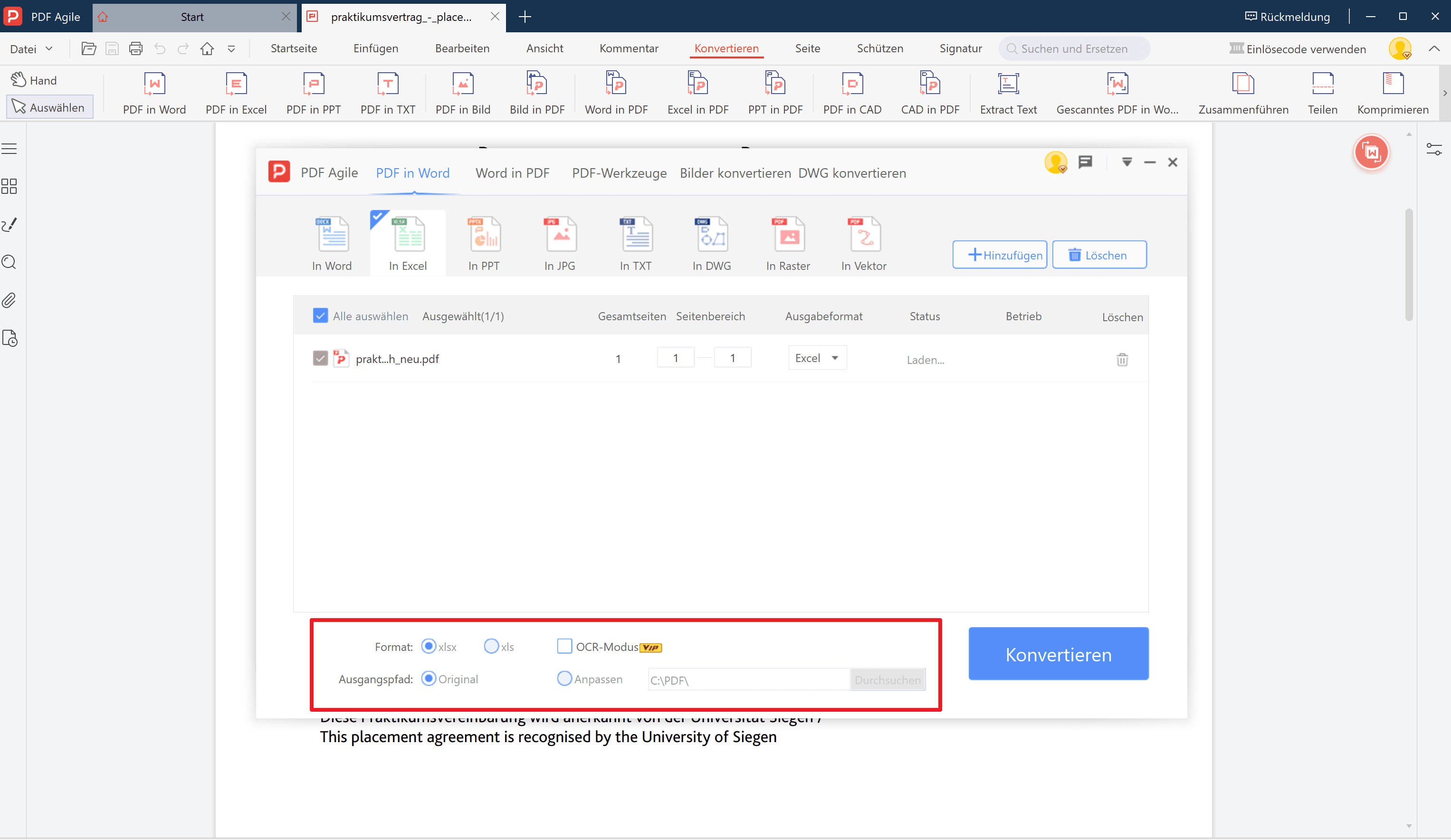 - Klicken Sie auf „Konvertieren“ und speichern Sie Ihre Excel-Datei.