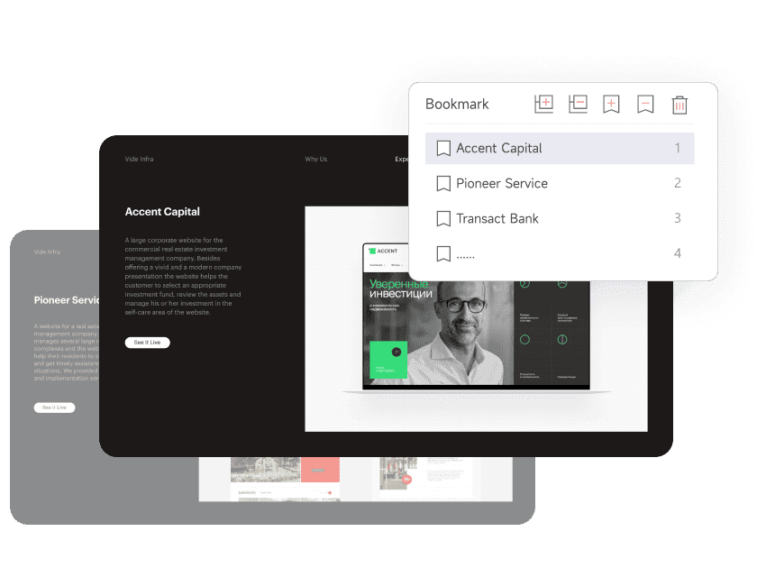 Add bookmarks to PDFs manually with just one click. Under the Add bookmarks to your PDFs with a single click. The Bookmark panel allows you to instantly locate specific pages, making your PDF navigation significantly more efficient.