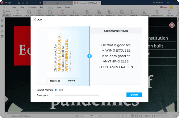 Effortlessly extract text from PDFs—even scanned documents—and copy it to other files, thanks to our powerful OCR technology.