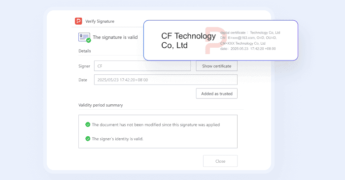 Create your own watermarks by applying digital signatures with certificates. This prevents unauthorized removal or alteration, protecting your document's integrity.