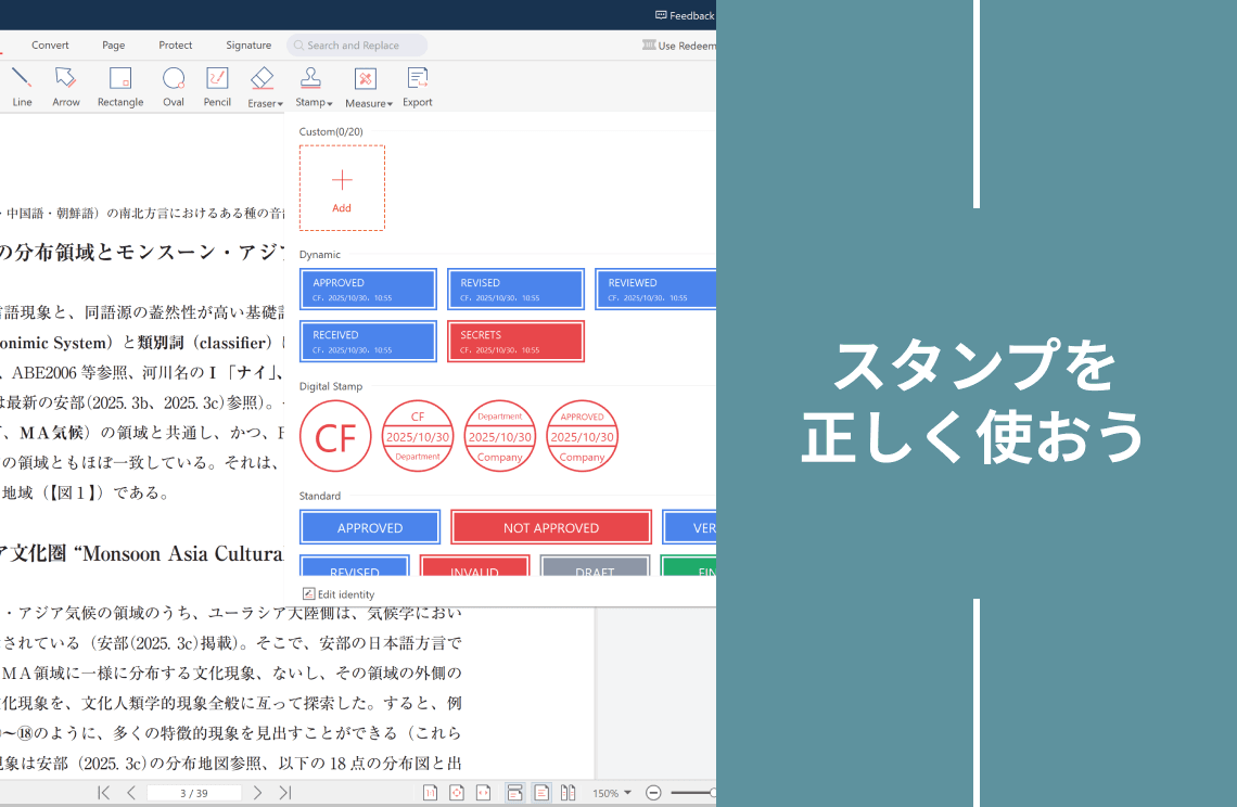 PDF管理で人気のあるAdobe Acrobatには、デジタル署名機能が備わっています。以下の手順で行いましょう。