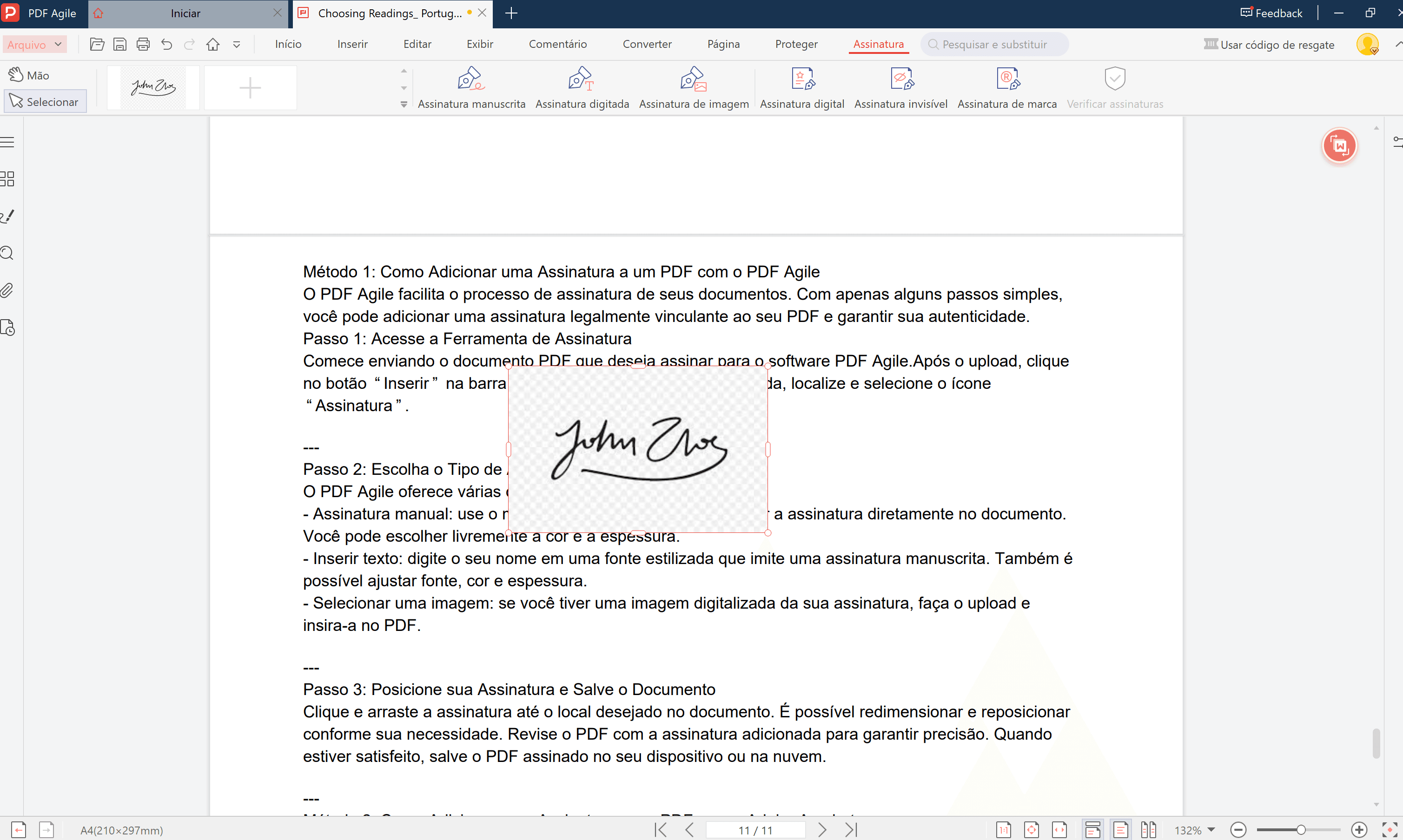 Método 1: Como adicionar uma assinatura a um PDF com o PDF Agile