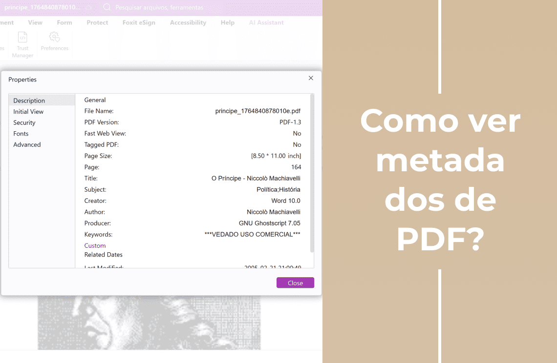 1. Clique com o botão direito no ficheiro PDF e selecione “Propriedades”.