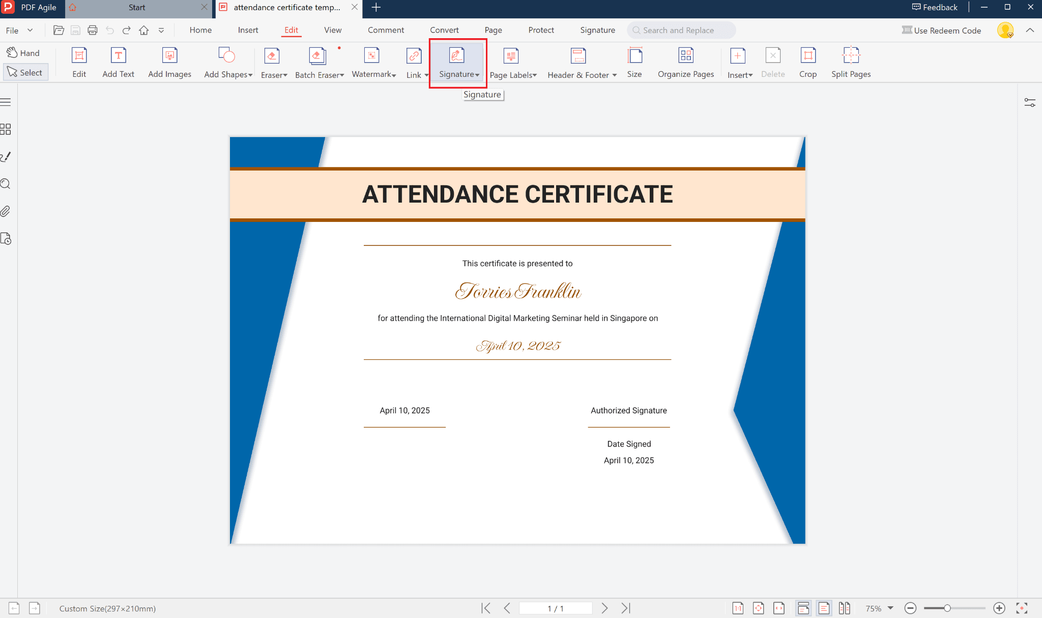 PDF Agile allows you to easily customize this certificate without complicated design software. Just follow these simple steps: