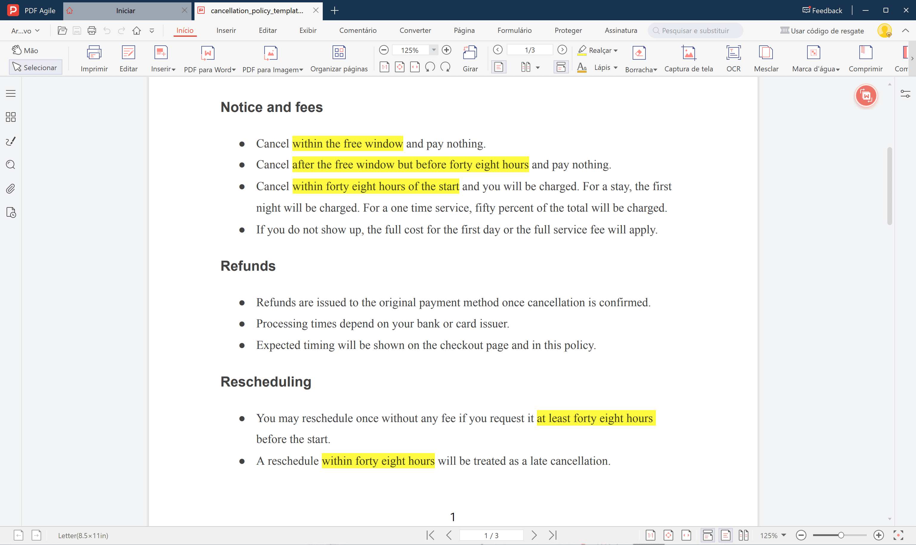 You can use PDF Agile to write, edit, and personalize your own cancellation policy quickly.