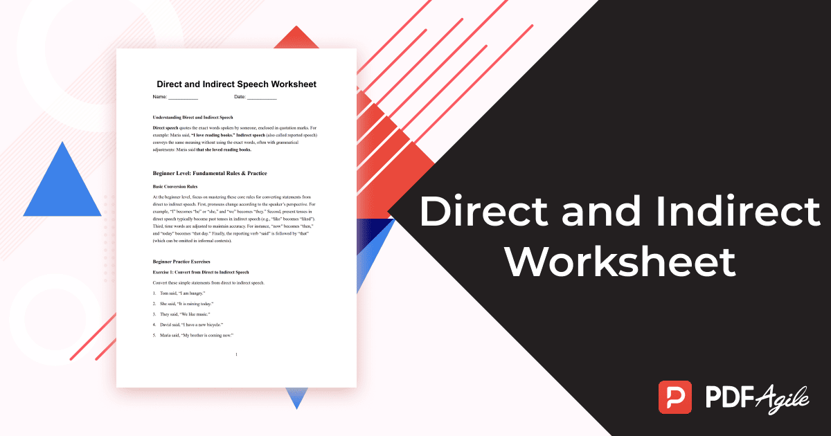 Are you looking for an effective way to teach or learn the nuances of direct and indirect speech? Our professionally designed Direct and Indirect Speech Worksheet template offers a comprehensive solution for English learners and educators alike. This ready-to-use template, available on PDF Agile, provides structured exercises that guide users from fundamental concepts to advanced applications of reported speech.
