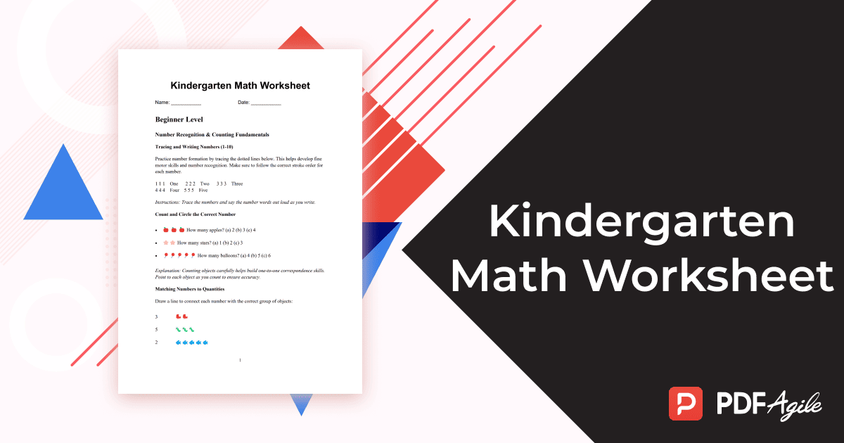 In summary, our Kindergarten Math Worksheet template on PDF Agile is more than just a set of exercises—it’s a gateway to nurturing a lifelong love for math. By blending essential skills with playful activities, it empowers children to explore numbers, patterns, and operations with confidence. The structured progression from beginner to advanced levels ensures that learning is both challenging and rewarding, while the accessibility of a free PDF makes it an indispensable tool for every family and educator.