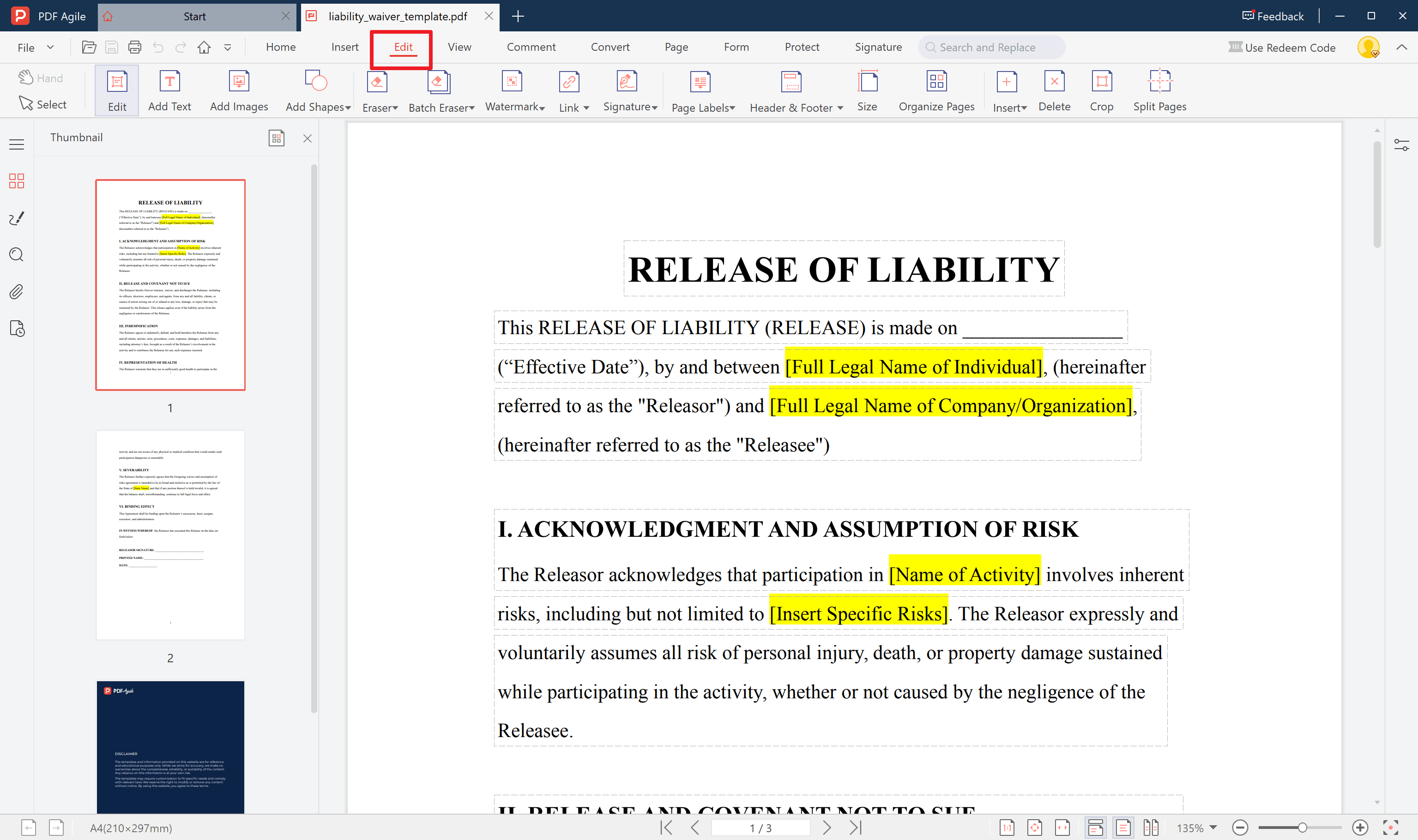 Using a PDF Agile Liability Waiver Template makes drafting simple and professional: