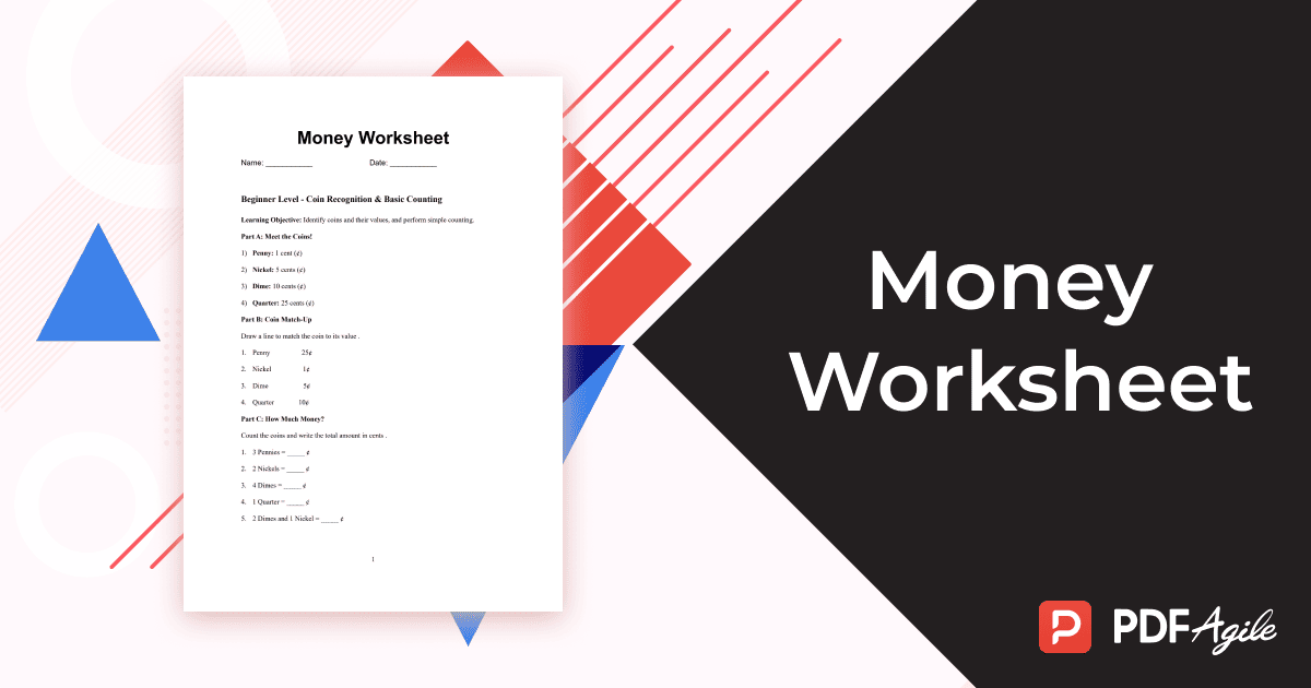 Welcome to the official PDF Agile resource hub, where we empower learners by merging practical skills with seamless technology. For English learners embarking on the journey of mastering a new language, encountering real-world concepts like personal finance can be daunting. How can one practice vocabulary, grammar, and life skills simultaneously? The answer lies in structured, engaging practice. We are thrilled to introduce our meticulously designed “Money Worksheet” template—a free, comprehensive resource now available in the PDF Agile app. This isn’t just another set of free money worksheets; it’s a scaffolded learning adventure that builds money math worksheets expertise from the ground up. This guide will walk you through the template’s rich content and show you exactly how to customize and use it within PDF Agile, turning a simple PDF into a dynamic tool for education and confidence-building.