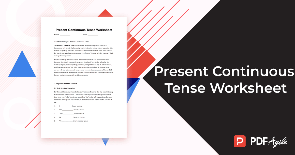 Embrace the opportunity to make English grammar engaging and effective. Download our Present Continuous Tense worksheet today from PDF Agile and discover how the right educational tool can transform learning from a chore into an accomplishment.