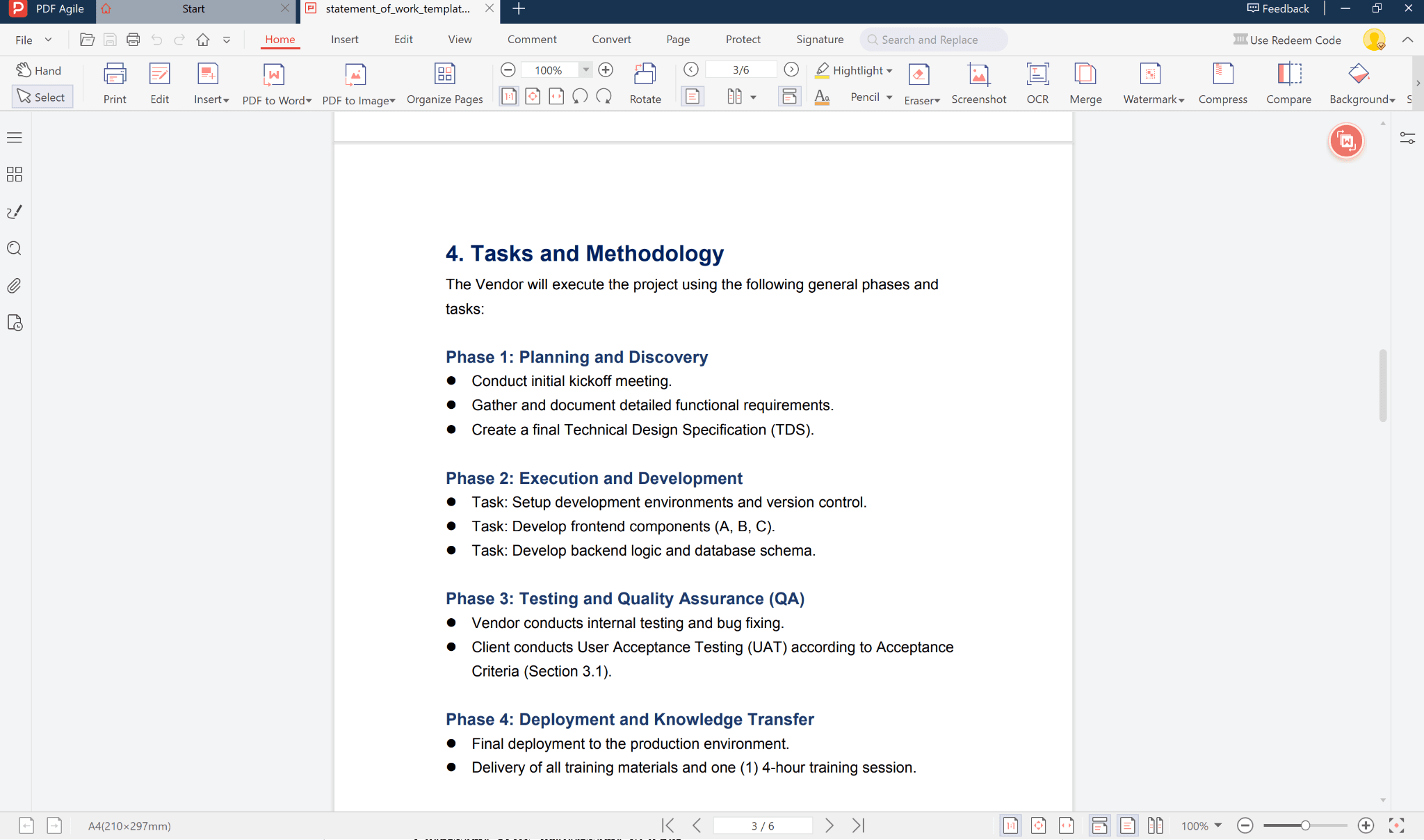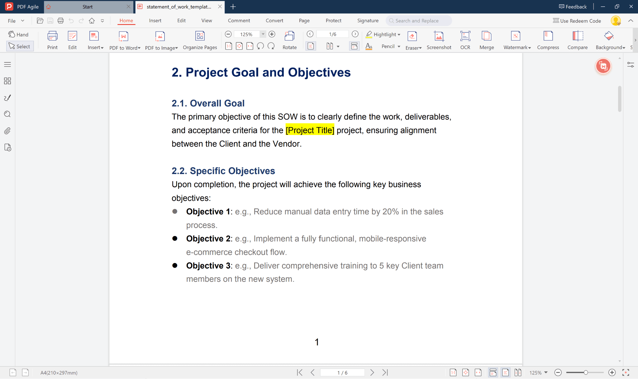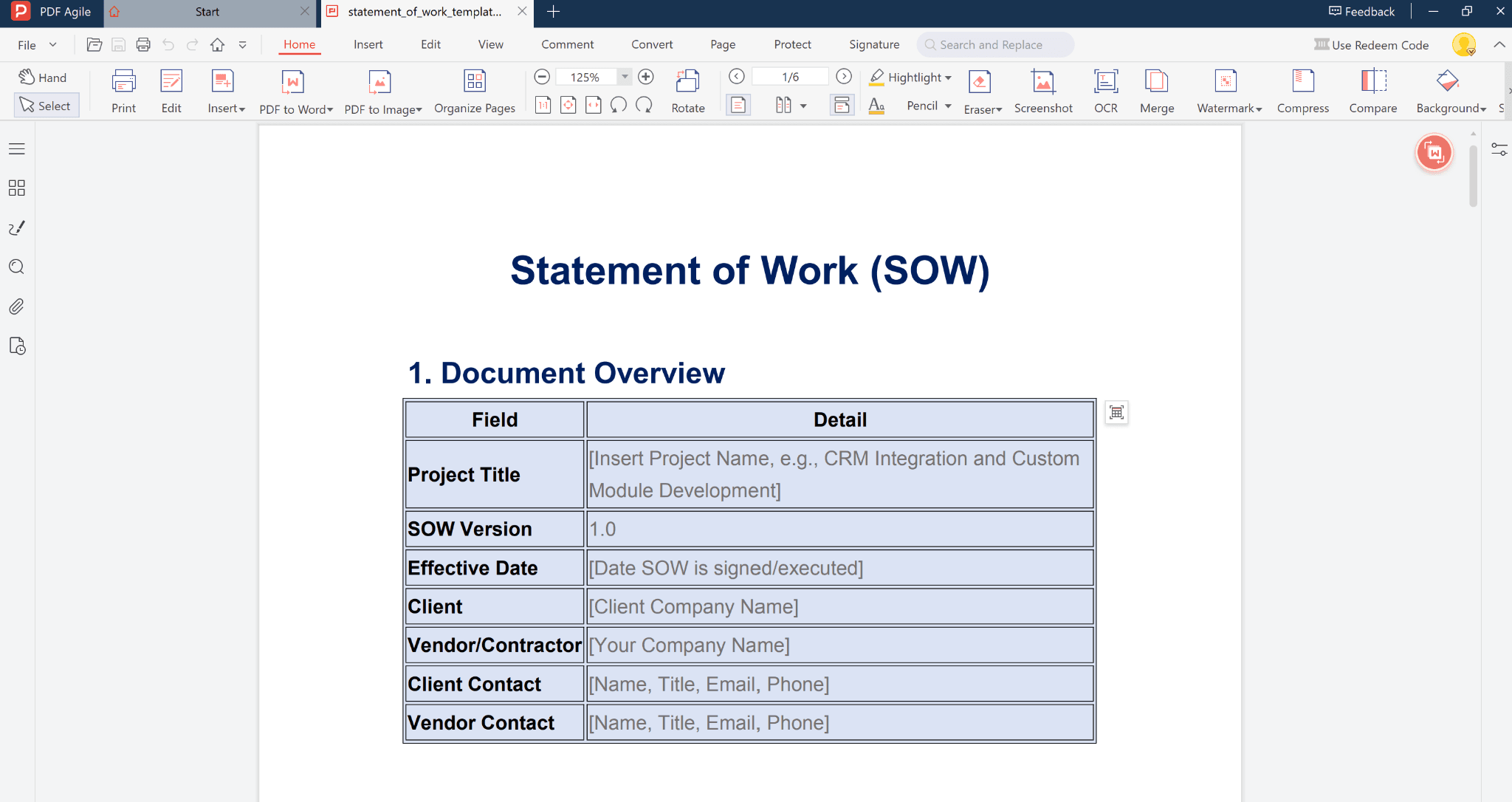 Follow these simple steps to create a professional SOW using our free fillable PDF template: